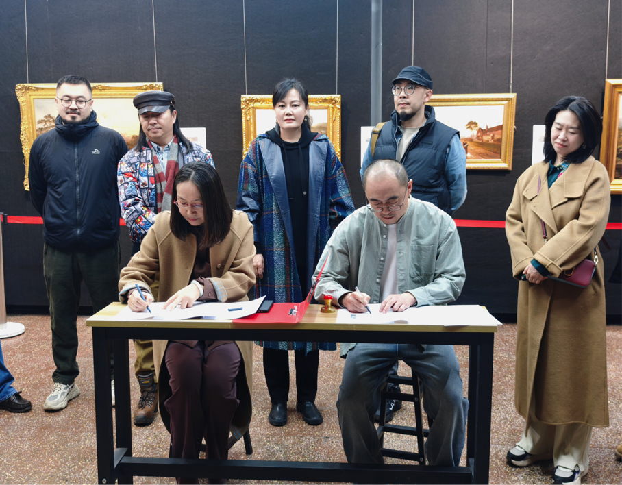 座谈会上,包双梅院长介绍了内蒙古艺术学院美术学院的专业设置、人才培养模式以及近年来毕业生的就业情况。她指出,学院一直高度重视学生的实践能力培养和就业工作,希望通过与内蒙古列夫当代美术馆的深入合作,为学生搭建更广阔的实习与就业平台,同时也借助美术馆的资源优势,促进学院教学与科研水平的提升。双方围绕实习基地建设、人才联合培养等方面展开了深入交流,双方达成合作意向并签署了校企战略合作协议书。