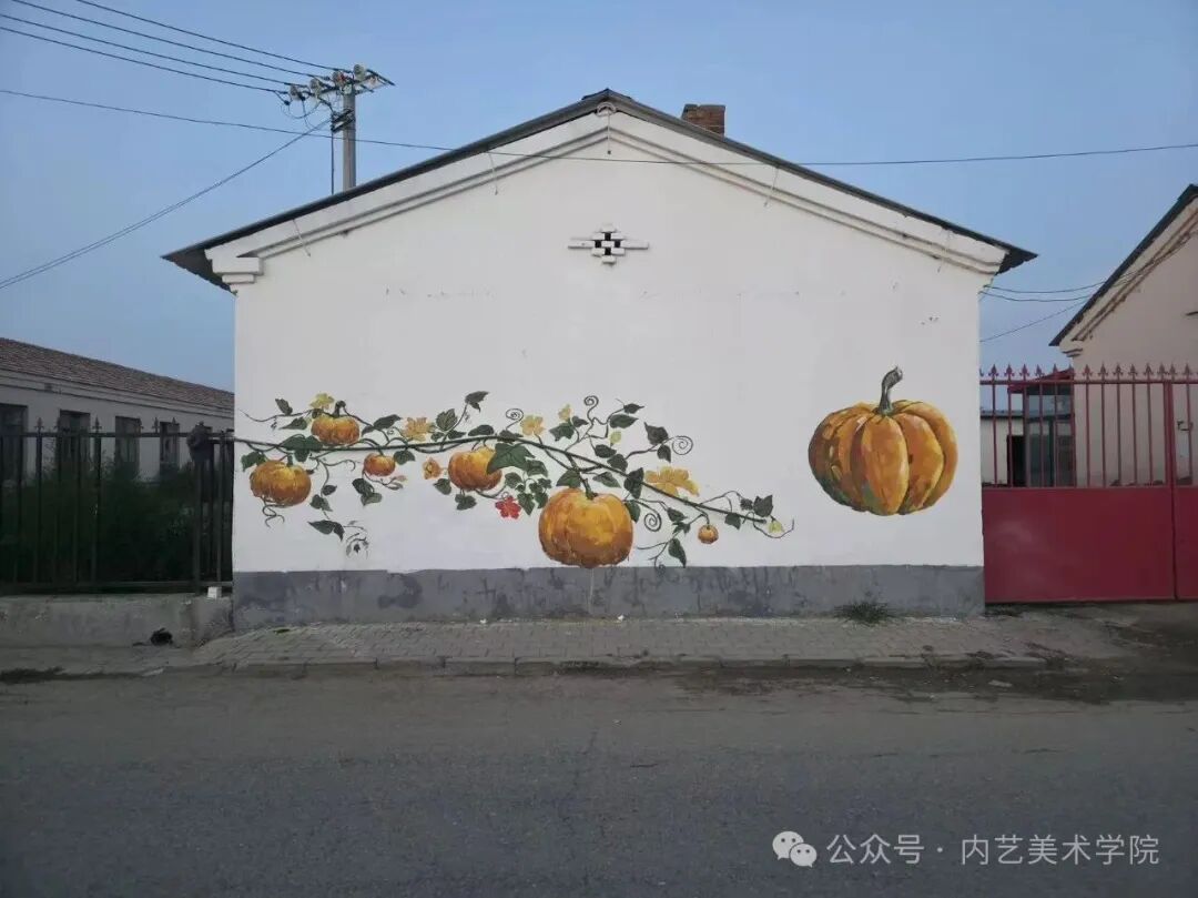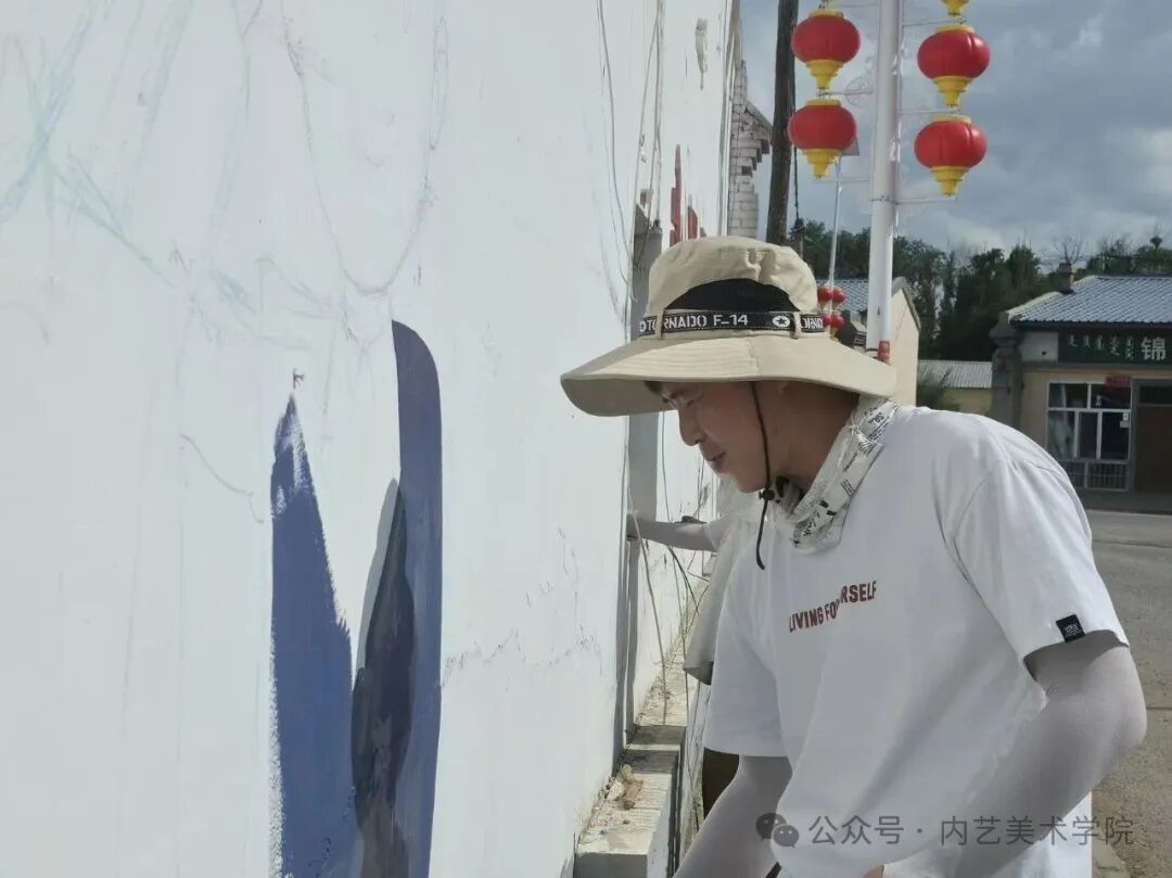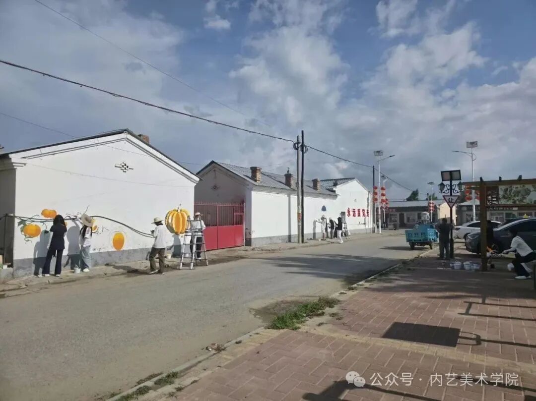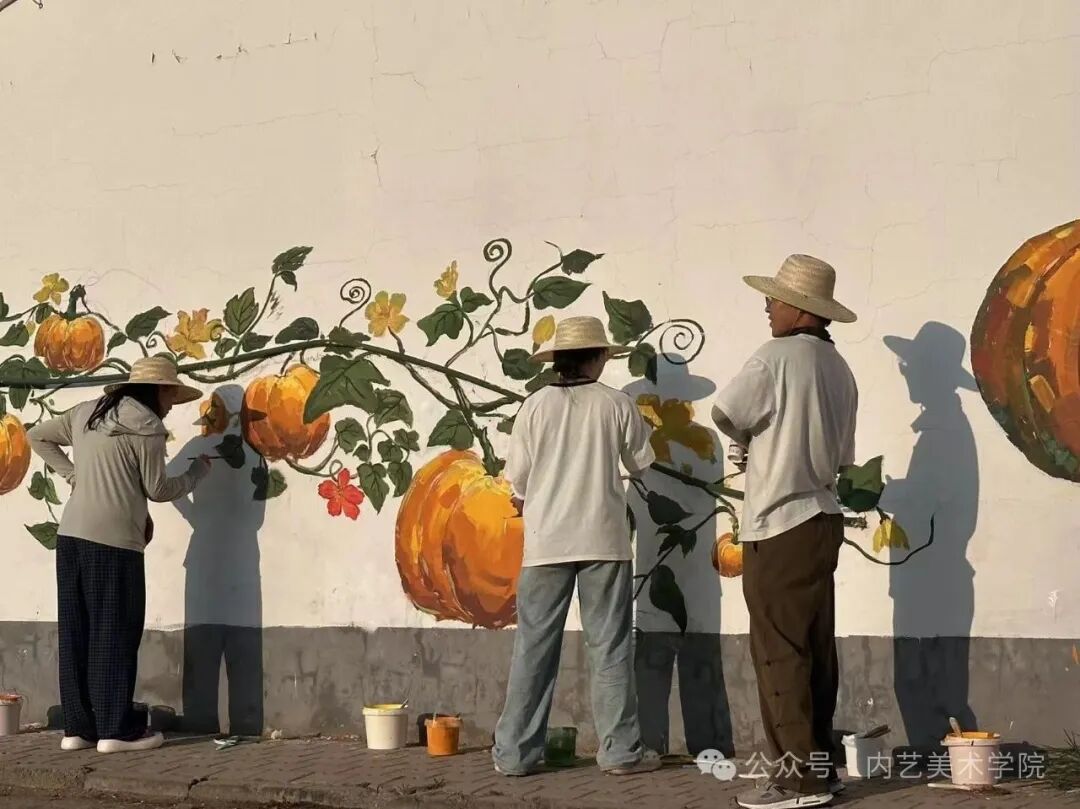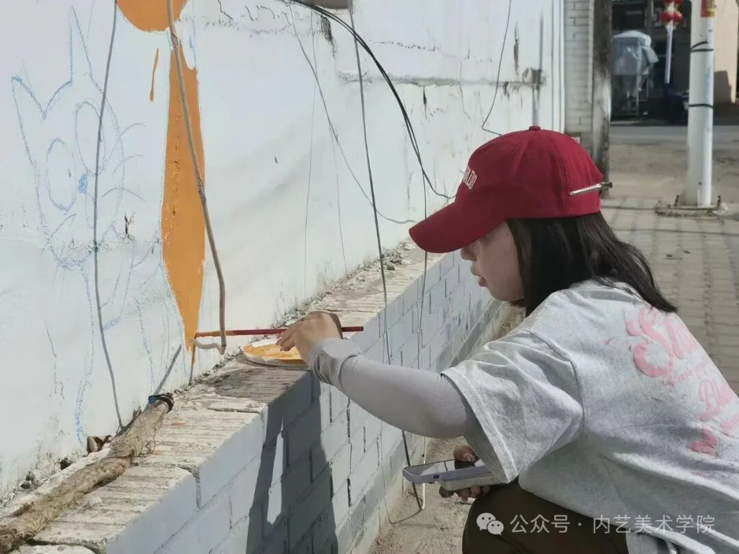 画笔所至,旧貌换新颜。此次墙绘活动,远非简单的环境美化,更是一次深刻的文化浸润与精神提振。它美化了村容村貌,提升了乡村颜值;它涵养了文明乡风,滋养了村民心田;它激发了内生动力,凝聚了振兴共识。一面面“会说话的墙”,成为展示新时代乡村气象、弘扬主旋律、传播正能量的亮丽风景线,无声地诉说着内艺美院学子服务乡村的赤子情怀与责任担当。是落实学校“22352”育人模式贯穿人才培养全过程的体现,将“一院一品”落实到学生思想理论教育和价值引领上,提升专业能力,推动美术学院工作创新。同学们在躬身实践中,深刻体悟了艺术服务人民、服务社会的真谛,也用行动诠释了“青春为中国式现代化挺膺担当”的主题。
