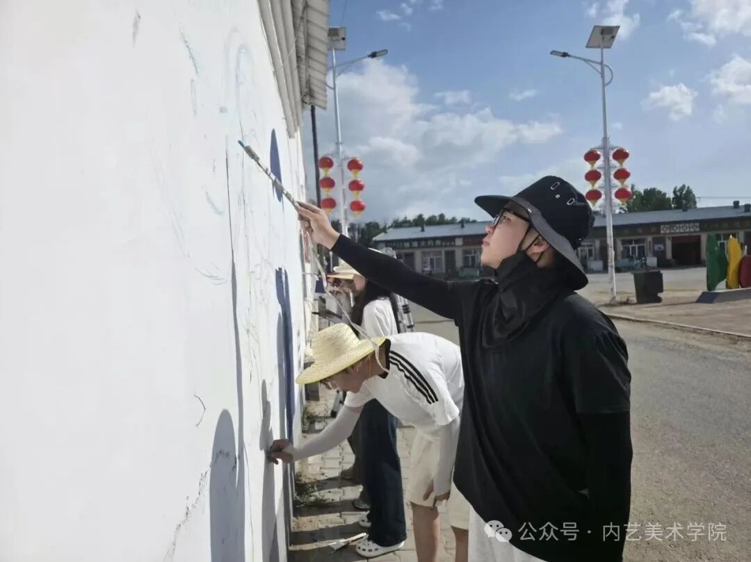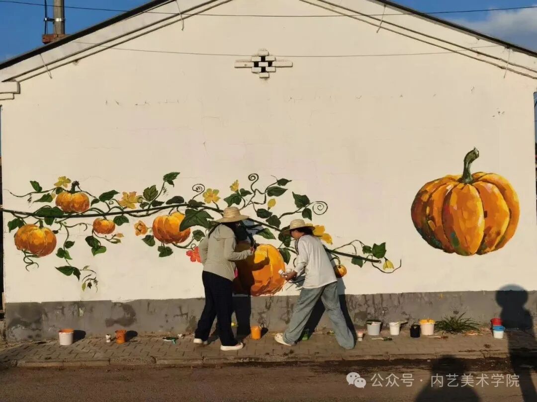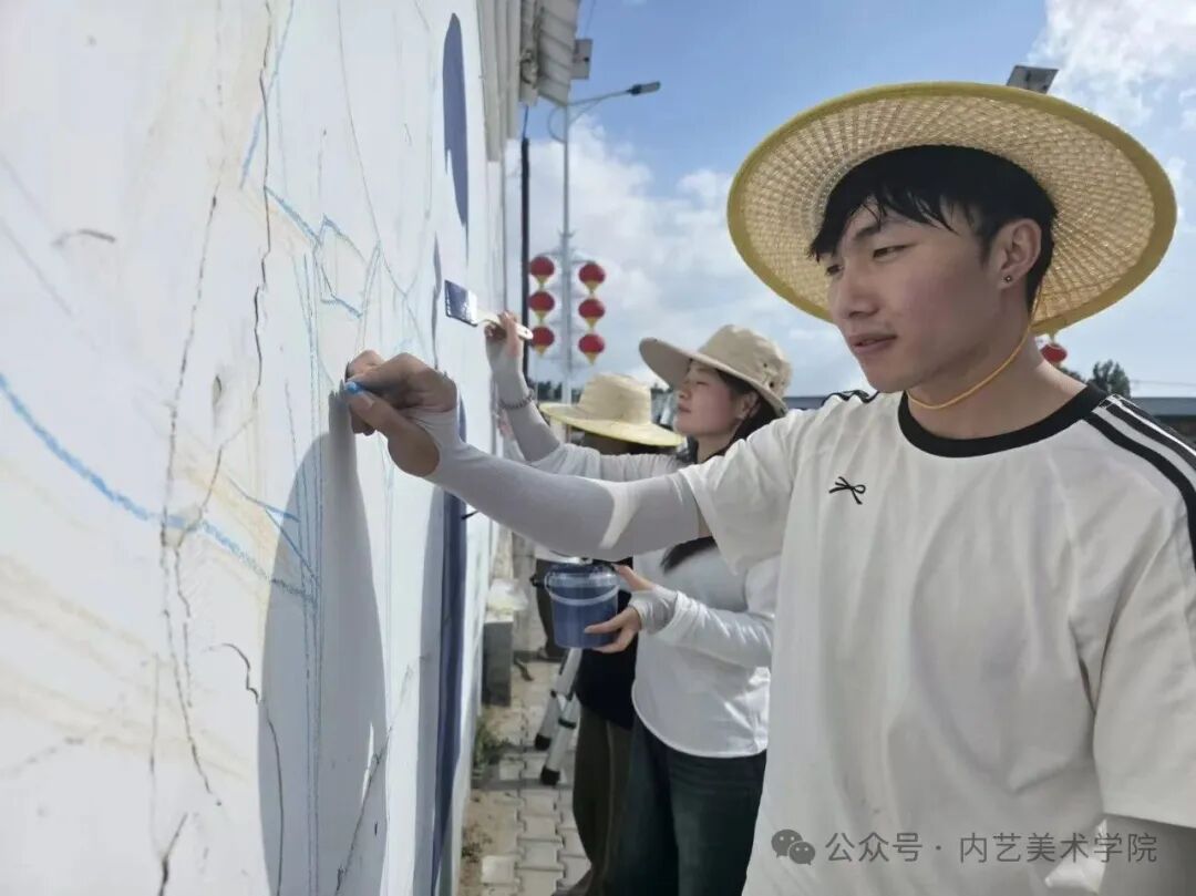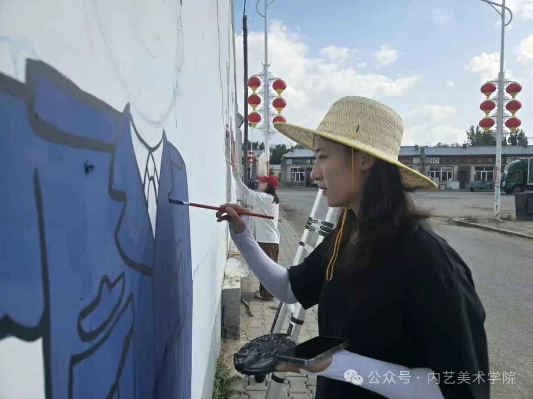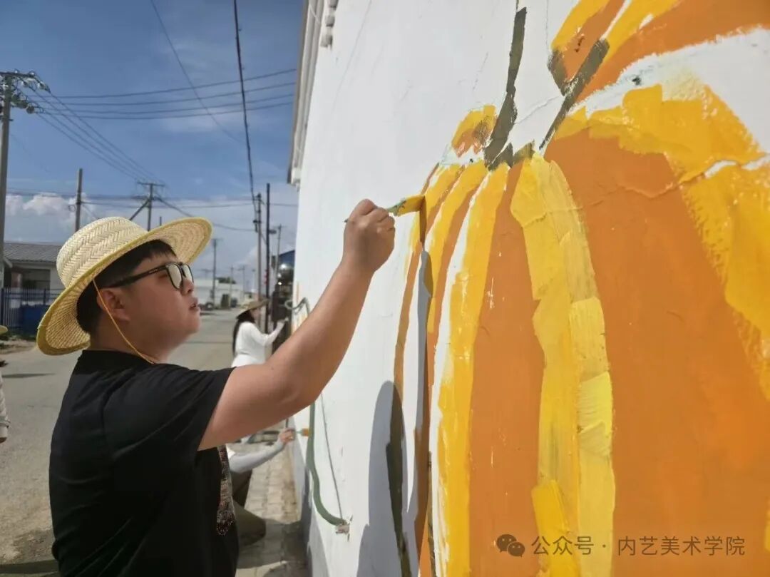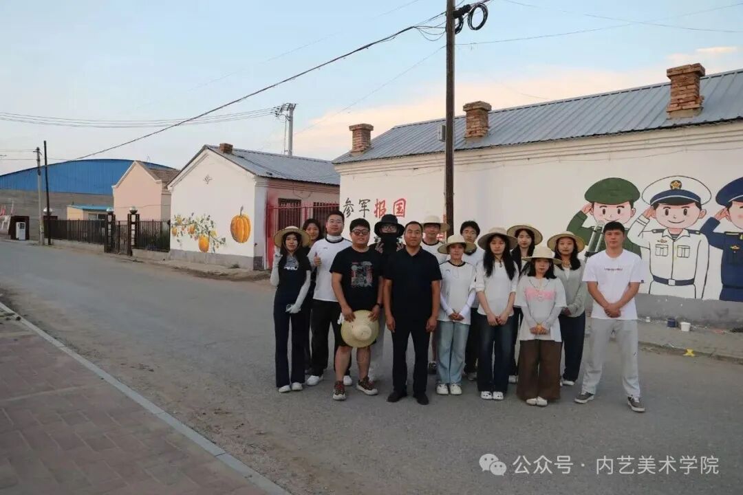 画笔所至,旧貌换新颜。此次墙绘活动,远非简单的环境美化,更是一次深刻的文化浸润与精神提振。它美化了村容村貌,提升了乡村颜值;它涵养了文明乡风,滋养了村民心田;它激发了内生动力,凝聚了振兴共识。一面面“会说话的墙”,成为展示新时代乡村气象、弘扬主旋律、传播正能量的亮丽风景线,无声地诉说着内艺美院学子服务乡村的赤子情怀与责任担当。是落实学校“22352”育人模式贯穿人才培养全过程的体现,将“一院一品”落实到学生思想理论教育和价值引领上,提升专业能力,推动美术学院工作创新。同学们在躬身实践中,深刻体悟了艺术服务人民、服务社会的真谛,也用行动诠释了“青春为中国式现代化挺膺担当”的主题。