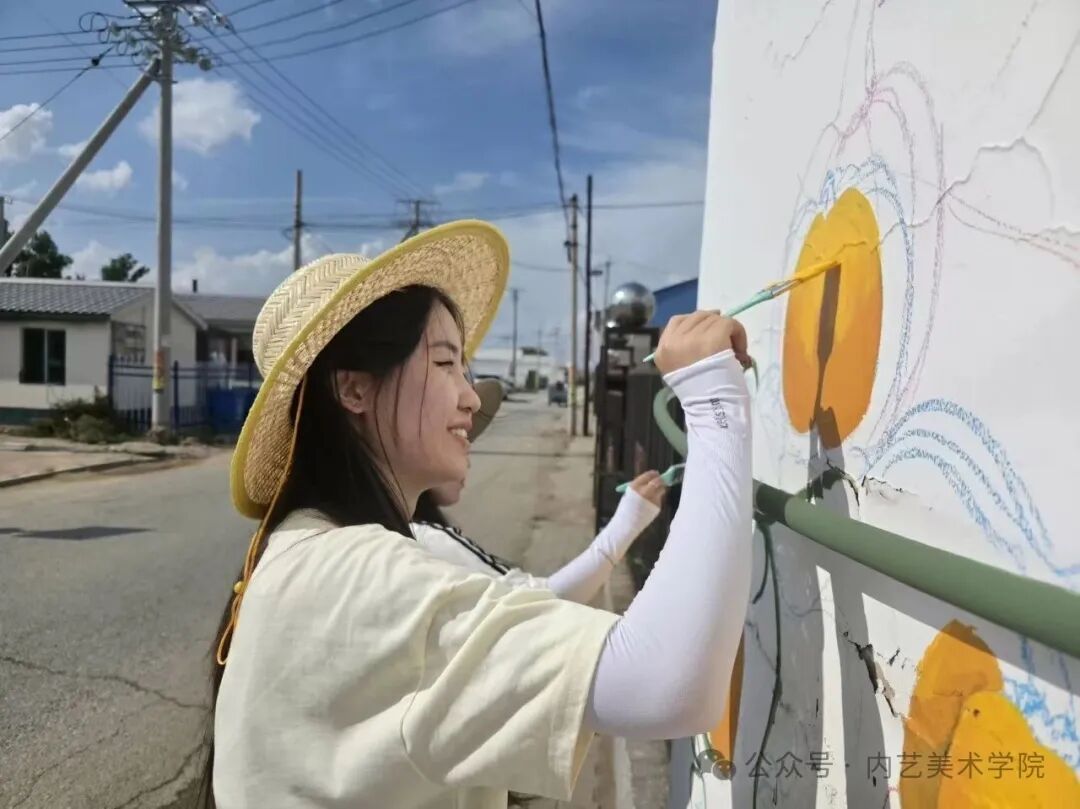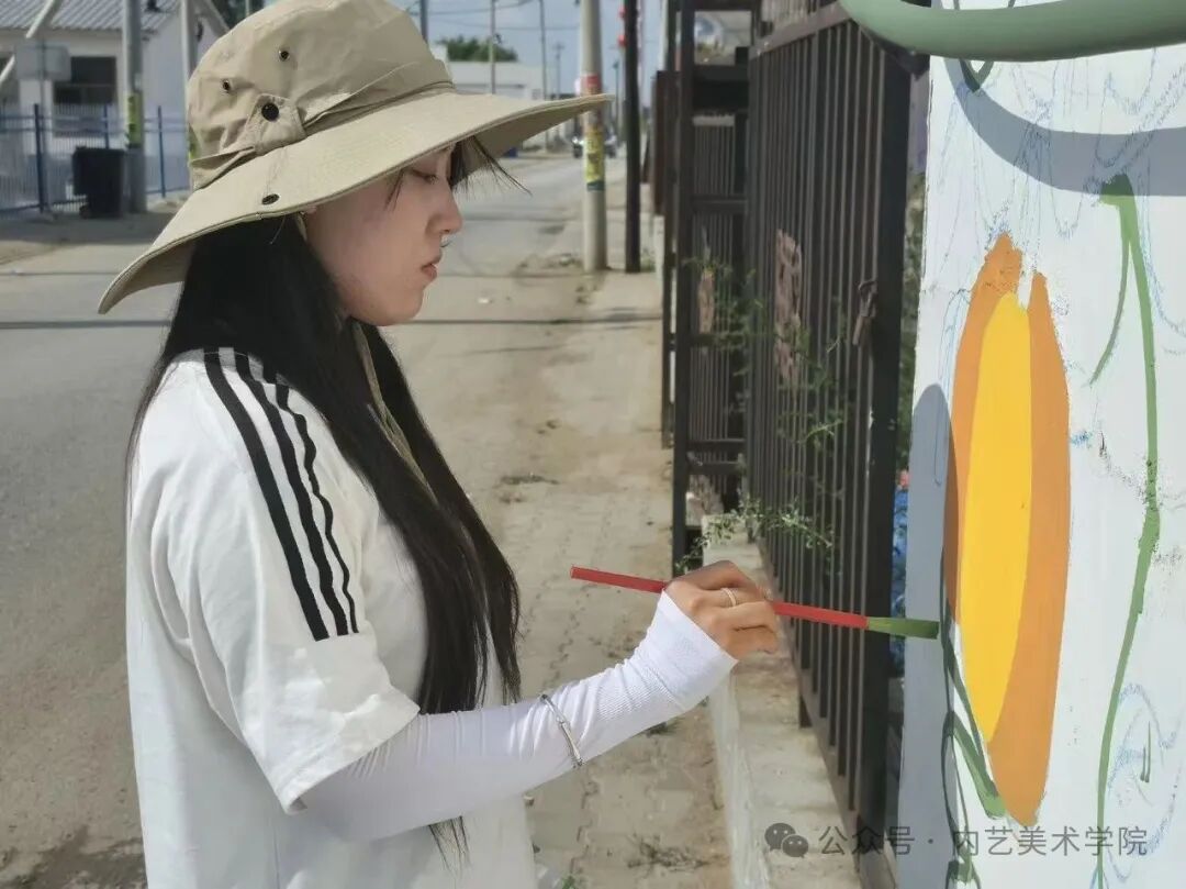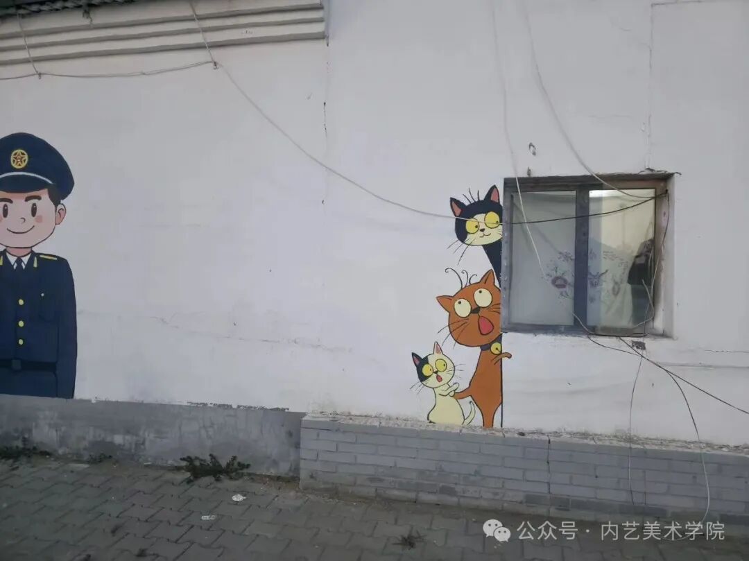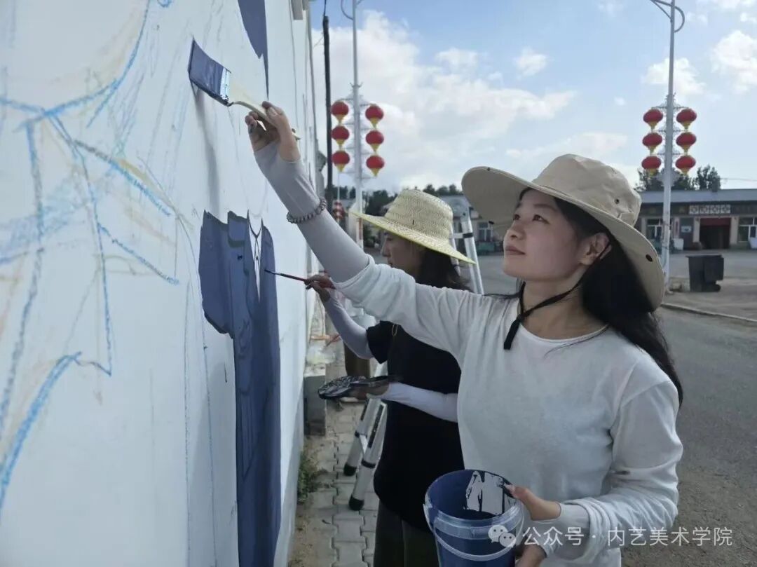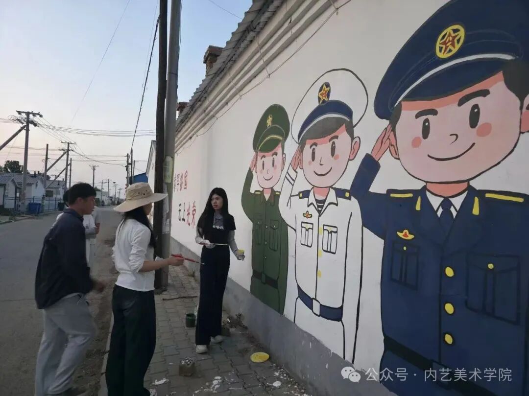 画笔所至,旧貌换新颜。此次墙绘活动,远非简单的环境美化,更是一次深刻的文化浸润与精神提振。它美化了村容村貌,提升了乡村颜值;它涵养了文明乡风,滋养了村民心田;它激发了内生动力,凝聚了振兴共识。一面面“会说话的墙”,成为展示新时代乡村气象、弘扬主旋律、传播正能量的亮丽风景线,无声地诉说着内艺美院学子服务乡村的赤子情怀与责任担当。是落实学校“22352”育人模式贯穿人才培养全过程的体现,将“一院一品”落实到学生思想理论教育和价值引领上,提升专业能力,推动美术学院工作创新。同学们在躬身实践中,深刻体悟了艺术服务人民、服务社会的真谛,也用行动诠释了“青春为中国式现代化挺膺担当”的主题。