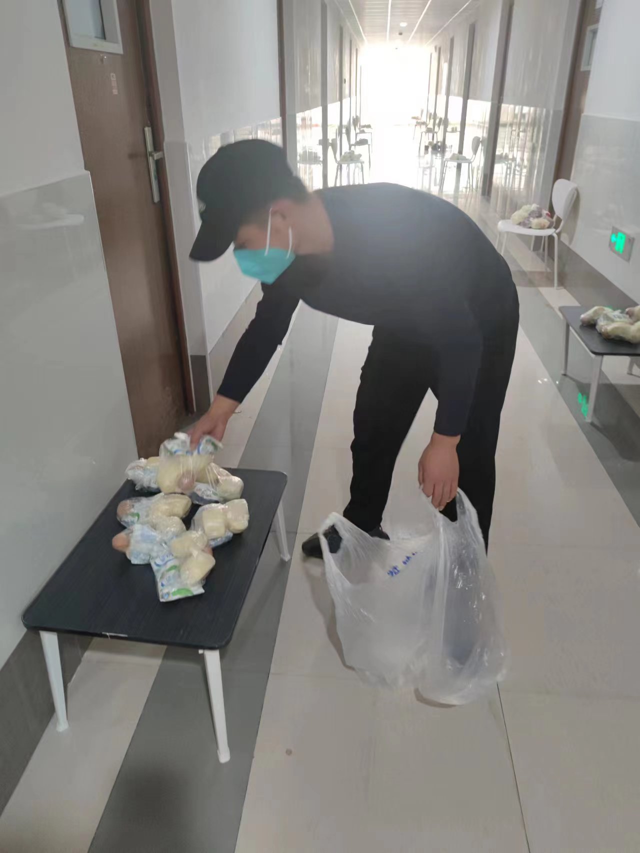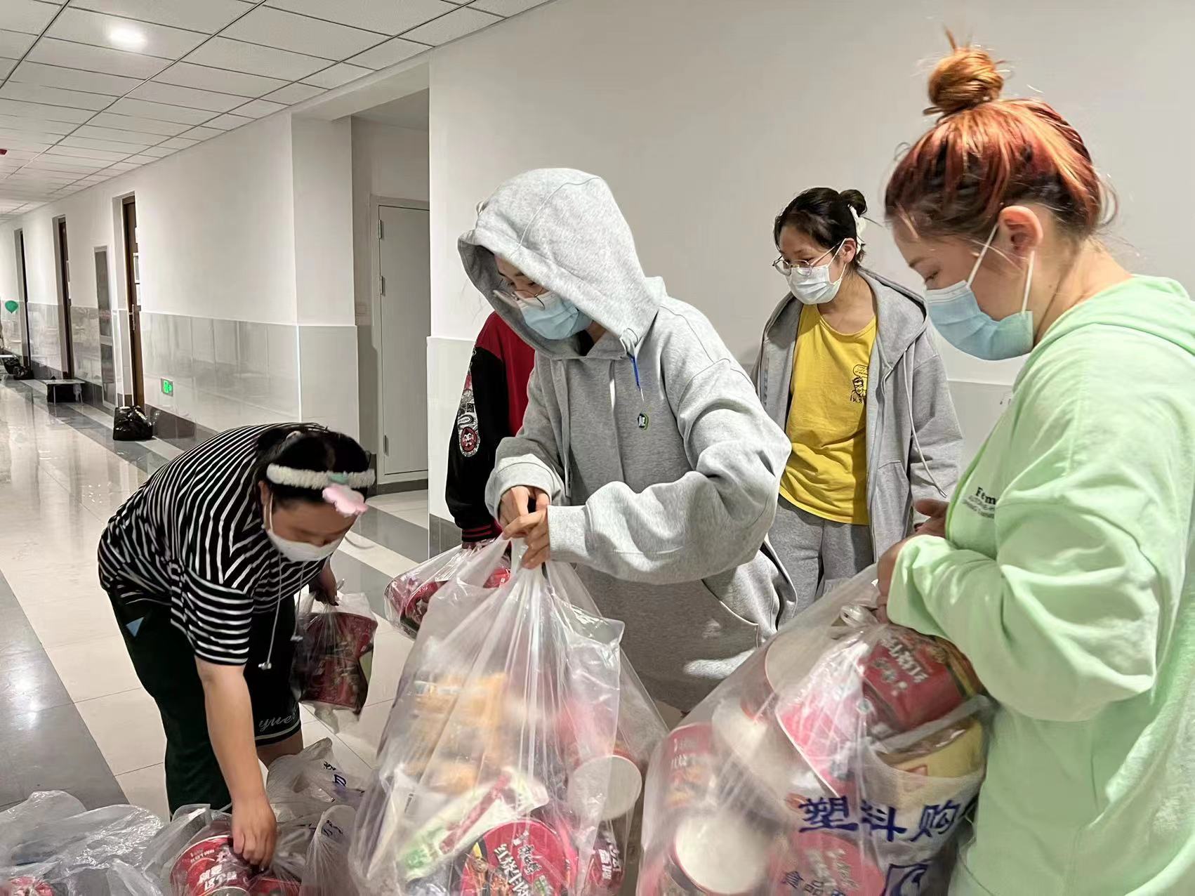 每到餐饭发放时间,爱民老师和哈思老师迅速对接餐食发放点,从发放点到每个宿舍门口,构筑起了一条校内物流配送链条,保证同学们一日三餐都能吃上热腾腾的饭菜。他们在做好学生生活保障工作的同时,还要安抚学生情绪,时刻关注学生的学习、心理等问题,用心与爱、责任与担当,守牢学校疫情防控的“坚强防线”。