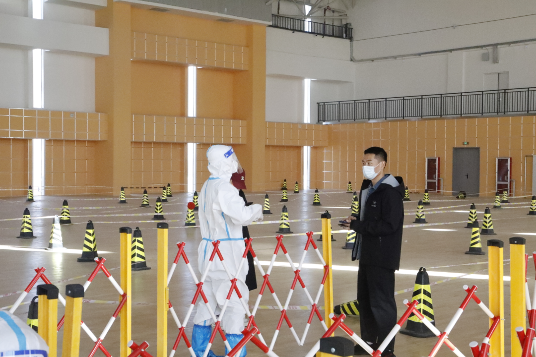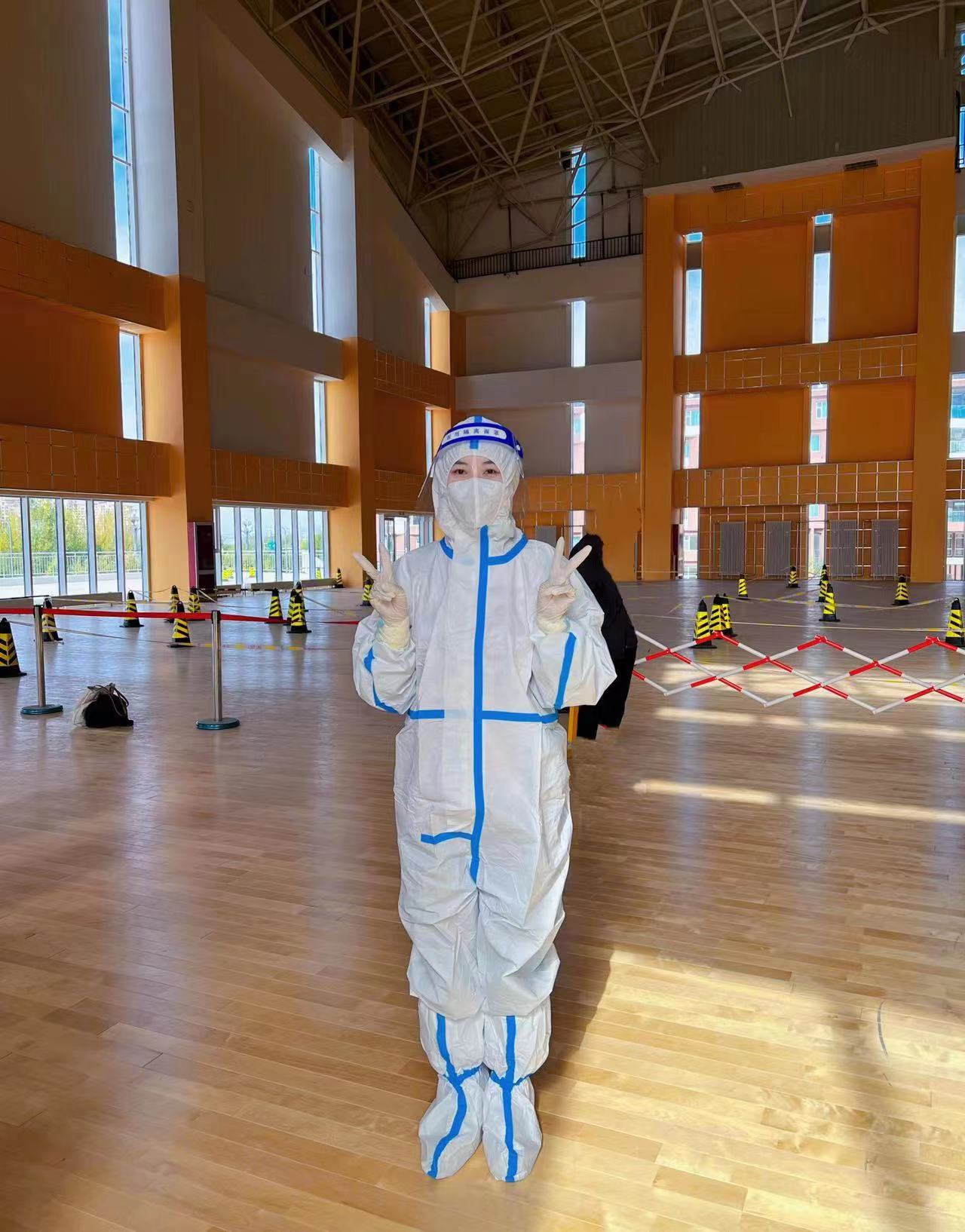 在核酸检测时,他们化身“大白”,以另一种身份和学生们并肩作战。虽然天气气温骤降,但由于穿着防护服和高强度的工作,一场场核酸检测工作下来,他们的衣服不知湿了多少次,又干了多少次……