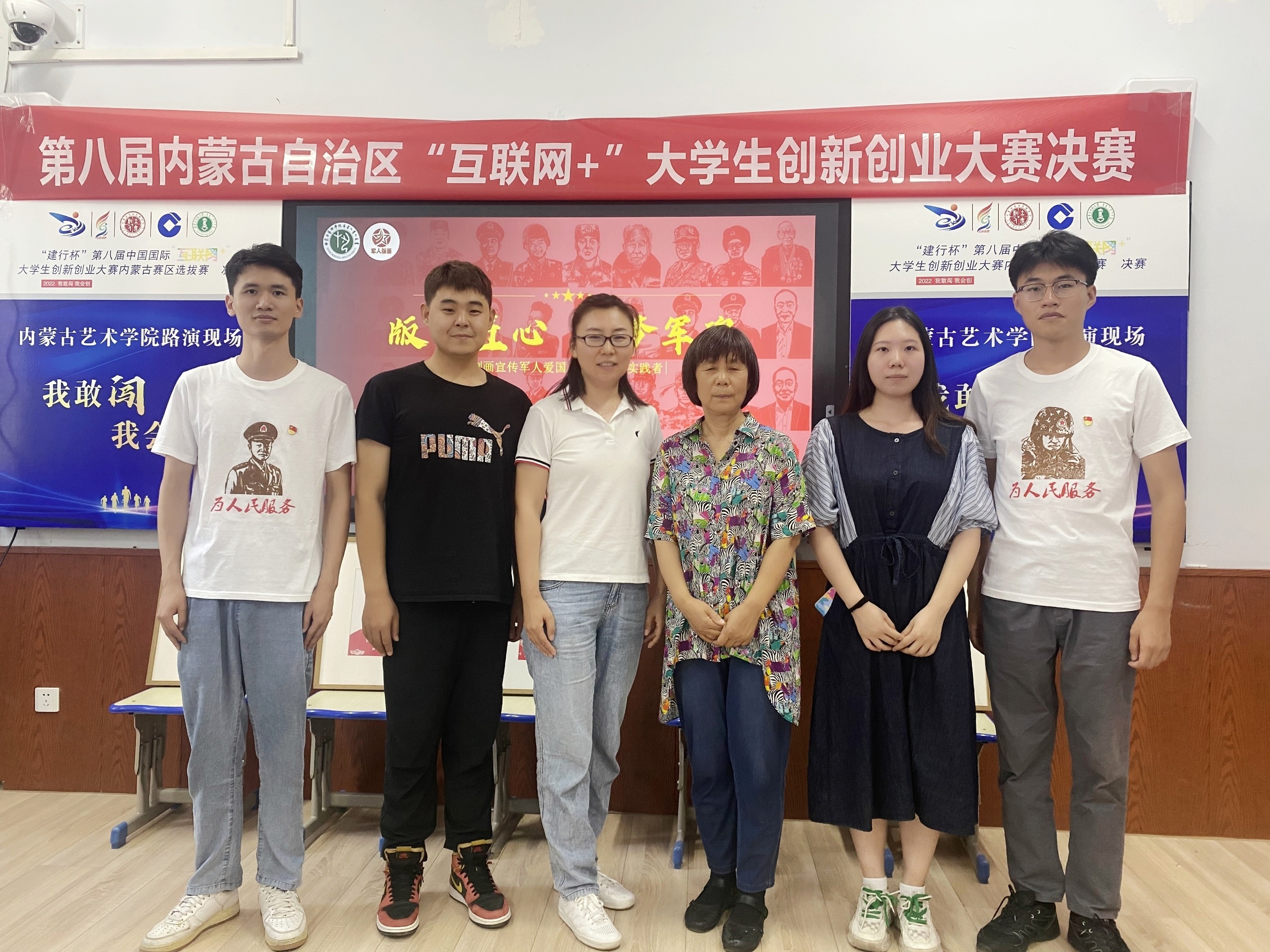 此项目由美术学院教师王茹、包双梅、胡日查和创新创业教育中心主任任良玉为校内指导教师,呼和浩特退役军人产业园张立洁、关爱退役军人协会会长王宝平担任企业导师,由版画专业研究生发起,联合设计、音乐等跨学科研究生、本科生组成团队,立志于深挖内蒙古自治区红色文化资源。此项目历经三年时间,经过专家多次辅导,不断对项目打磨、反复设计路演,团队成员克服困难、团结一心,多次走进革命老区,与企业进行资源对接,通过市场调研、设计产品、制作印刷、宣传推广,将项目成果推广到学校、企业、美术馆等机构,参加2022年退役军人·军人家属专场招聘会暨创业成果展示交流活动,参与现场直播,获得退役军人和社会人士的一致好评,激发了“我敢创、我会创”的内生动力,以“艺术+创新创业”为载体传承爱国主义的精神。