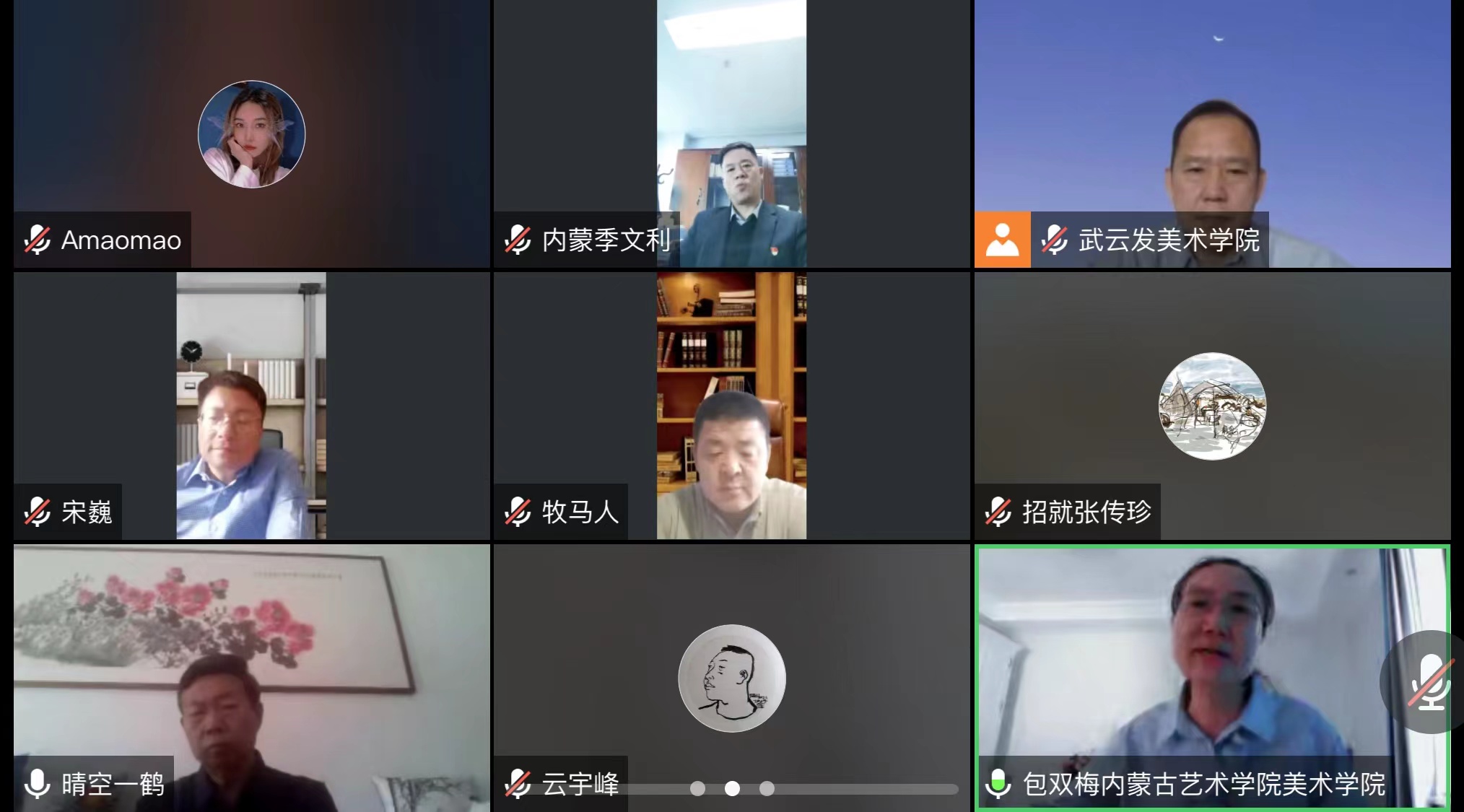 为全面贯彻落实教育部关于开展全国高校书记校长访企拓岗促就业专项行动的通知要求和自治区教育厅相关部署安排,促进我校毕业生更充分、更高质量就业,12月28日上午,我校党委副书记赵晓强,招生与就业服务中心主任张传珍,美术学院党总支书记武云发,院长包双梅,党总支副书记、副院长朱向峰,副院长王茹与内蒙古西部天然气集团公司、内蒙古赤峰市文化旅游局、内蒙古邮政公司3家单位进行会谈,开展访企拓岗线上交流活动。会议由美术学院党总支书记武云发主持。