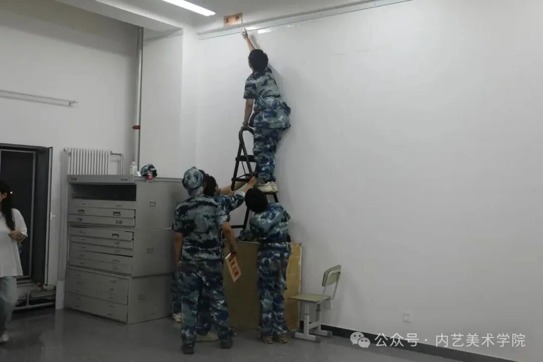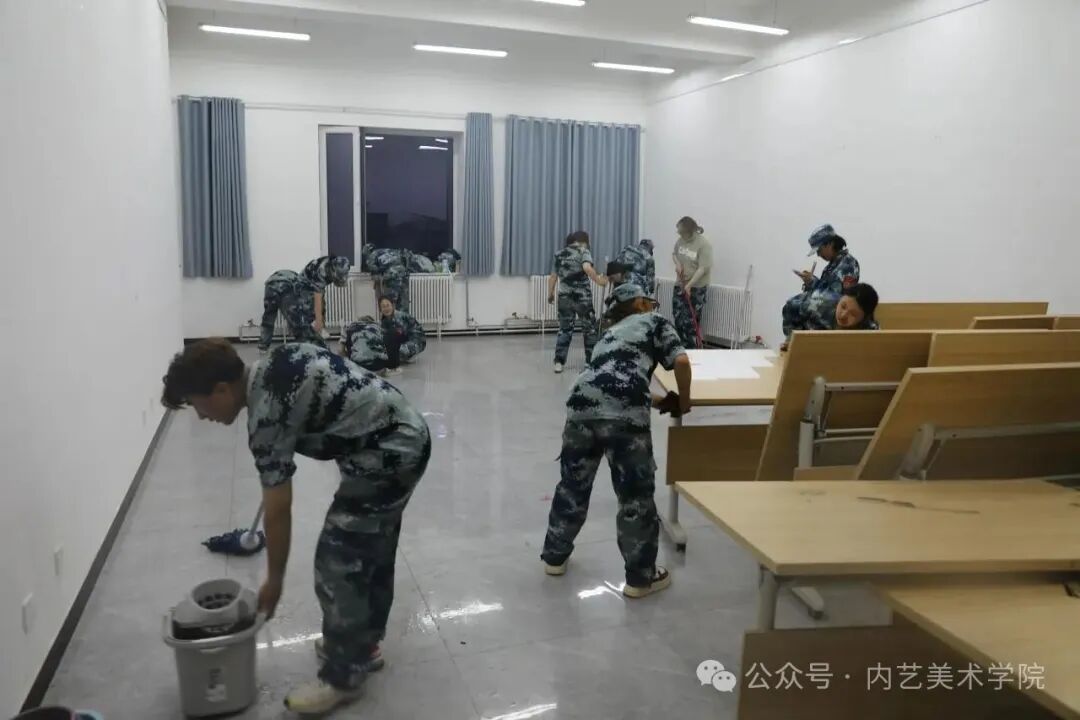 近日,我院2025级新生军训工作正有序开展。与以往不同的是,新生们在白天接受严格军事训练的同时,晚间还同步开展画室整理、美术楼参观等特色美育实践活动,在迷彩与艺术的碰撞中,让军训生活更添人文温度。