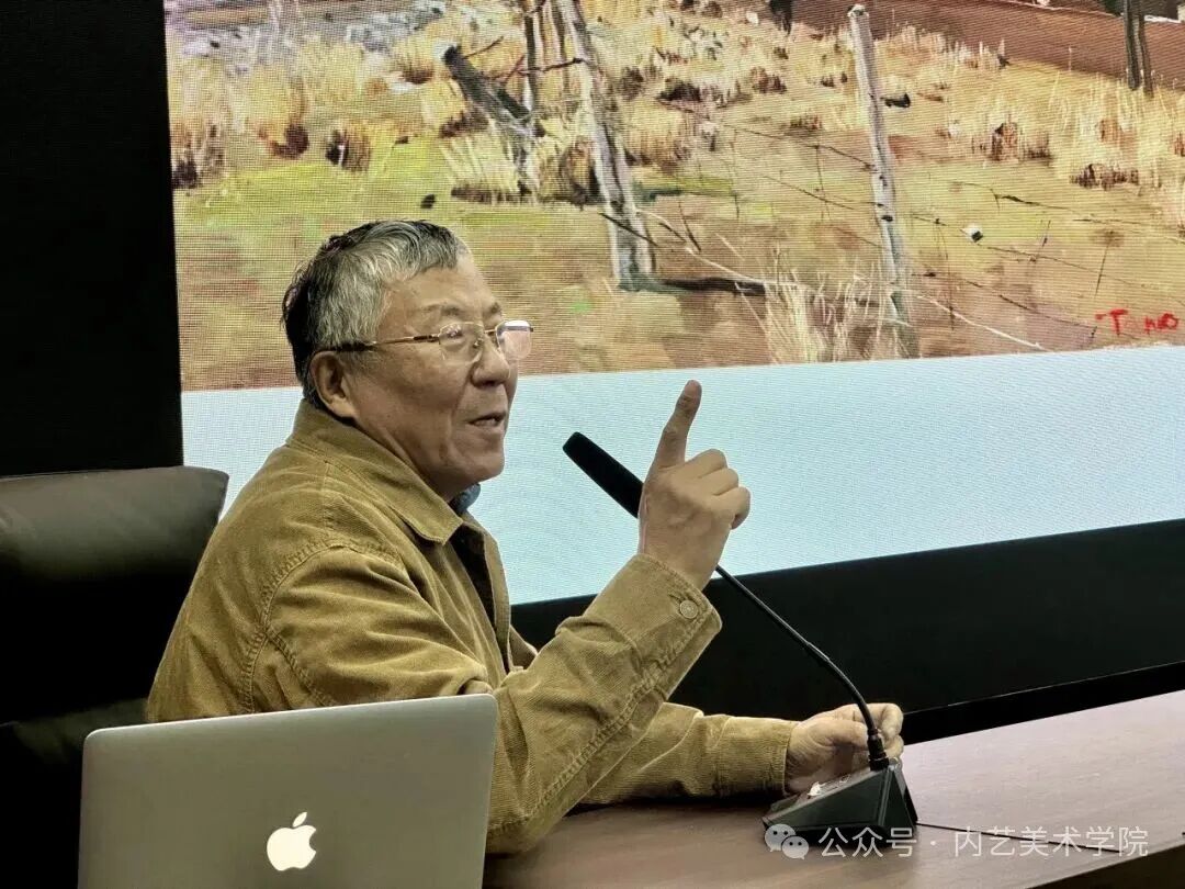 王铁牛教授结合个人经历,讲述了自己从青年时期至今坚持写生的艺术之路。他强调了风景写生对艺术家终身成长的重要性,指出写生不仅是技巧训练,更是观察能力、感受力和综合艺术修养的提升途径。他特别反对过度依赖照片创作,强调写生应完成“观察-感受-表达”的全过程,体现时间感和外光变化,坚守写实传统。