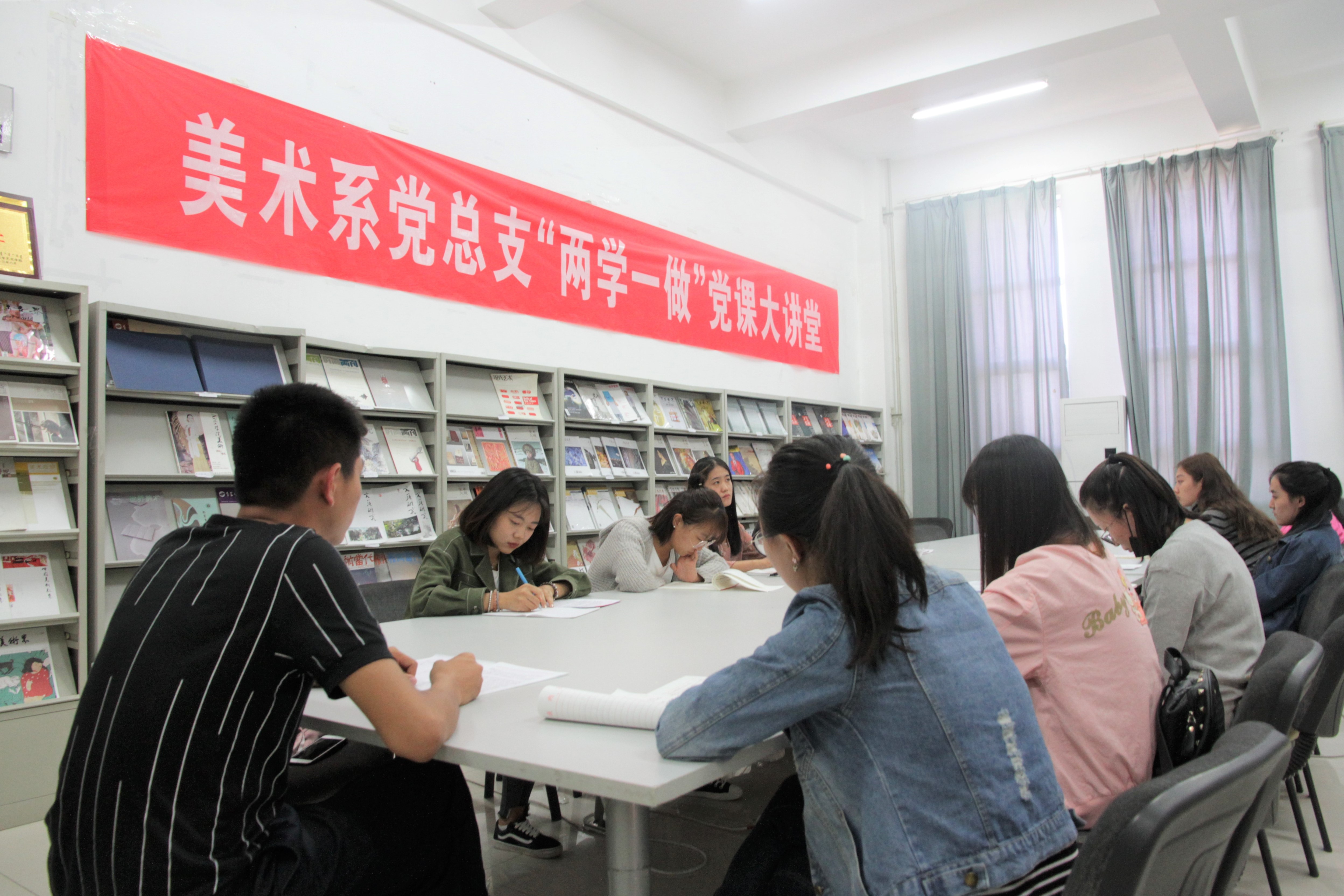 为深入推进“两学一做”学习教育常态化制度化,美术系学生党支部全体党员利用暑假开展自学,9月26日,美术系学生党支部在资料室举办暑期学习心得交流会。